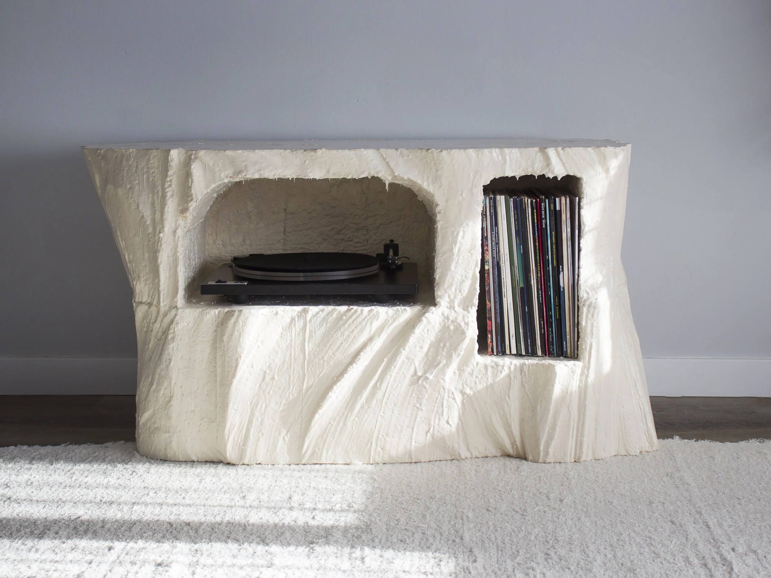 STAINED MAPLE, MAPLE PLYWOOD, STEEL, ROCK